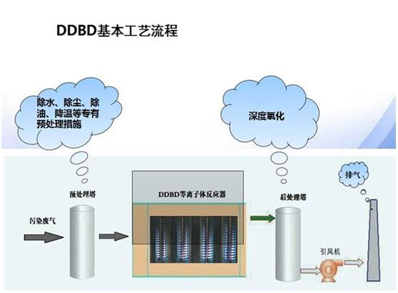 當(dāng)外加電壓達到氣體的放電電壓時,氣體被擊穿,產(chǎn)生包括電子、各種離子、原子和自由基在內(nèi)的混合體。低溫等離子體降解污染物是利用這些高能電子、自由基等活性粒子和廢氣中的污染物作用,使污染物分子在極短的時間內(nèi)發(fā)生分解,以達到降解污染物的目的。